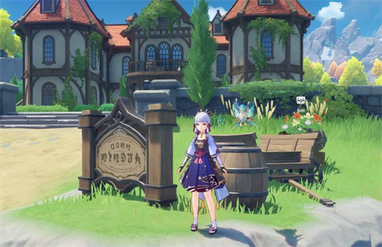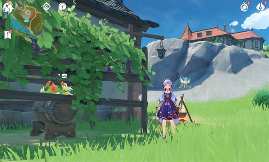 最后一个宝箱,也就是宝箱八,在晨曦酒庄南方(也就是地图下方)。会看到一个有烟囱的房子,宝箱就在房子侧面的空地上。同样来自不熟的NPC,有一个店铺装饰,以及两万摩拉两个矿。